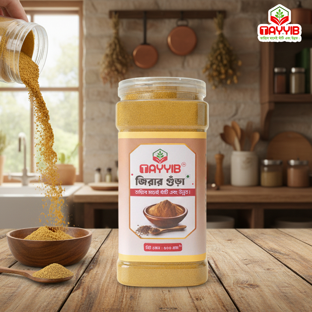Tayyib জিরার গুঁড়া নির্বাচিত উচ্চমানের জিরা বীজ থেকে পরিস্কার করে গ্রেড করা হয়। প্রতিটি বীজ প্রাকৃতিকভাবে শুকিয়ে বিশুদ্ধভাবে গুঁড়া করা হয় যাতে ঘ্রাণ ও স্বাদ টিকে থাকে। জিরার গুঁড়া রান্নায় গভীর স্বাদ আনে, হজমকে সহায়তা করে ও খাবারের স্বাস্থ্যের মান উন্নত করে। প্রতিটি জারেই নিশ্চিত করা হয় consistent গুণমান ও নিরাপদ প্যাকেজিং- পরিবারের দৈনন্দিন ব্যবহারের জন্য আদর্শ।